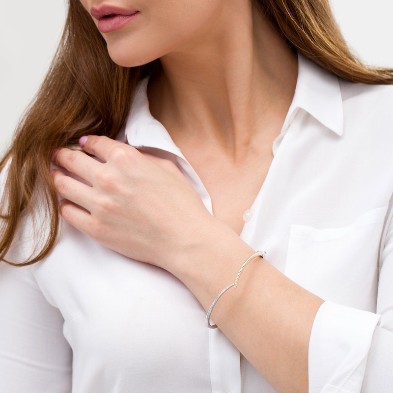 1/4 CT. T.W. Diamond Lasso Hinged Bangle in Sterling Silver and 10K Gold
