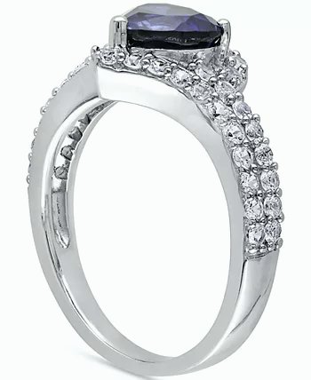 Absolute enchantment. A heart-shaped blue sapphire is caught up in a swirl white sapphires in this sparkling silver ring.